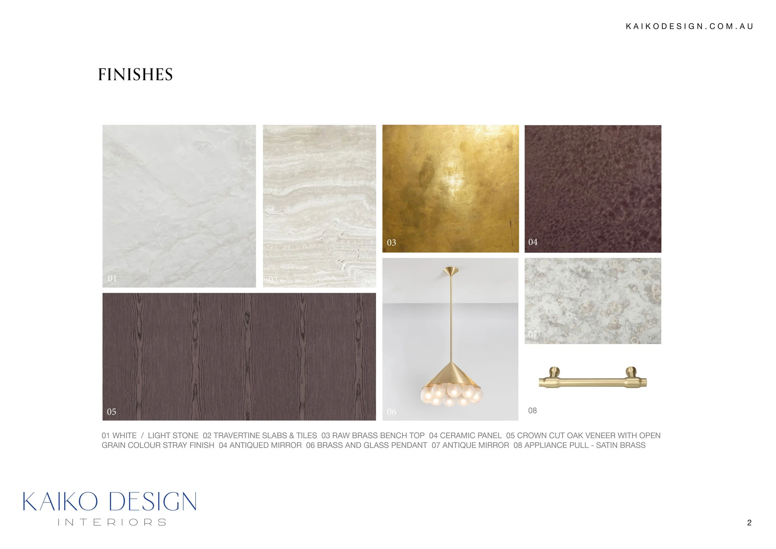 At Kaiko Design Interiors, we follow a five stage framework recognised across Australia’s professional design industry. It’s a method refined through experience, ensuring clarity, creativity, and calm at every step.
